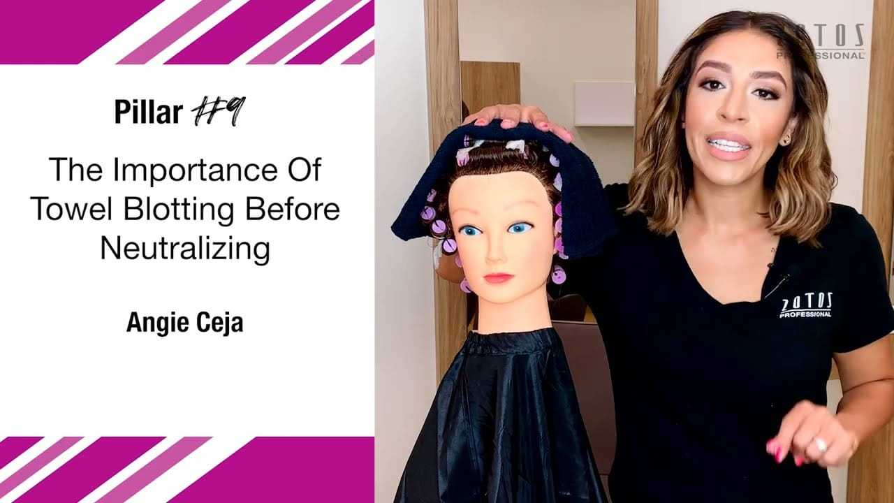 The Importance of Towel Blotting Why is towel blotting so important? The degree of dampness in your client’s hair prior to wrapping a perm is critical to the success of your service. Once you’ve shampooed and thoroughly rinsed the hair, towel blot until it’s damp—not wet. Hair that’s too saturated won’t be able to absorb enough waving lotion. Think of hair like a sponge: a wet sponge can’t soak up any more liquid because it is too full, but a damp one can. Once hair has reached desired dampness, it’s ready to be wrapped. It should remain damp throughout the wrapping process. If hair starts to dry out while wrapping, lightly mist with water.