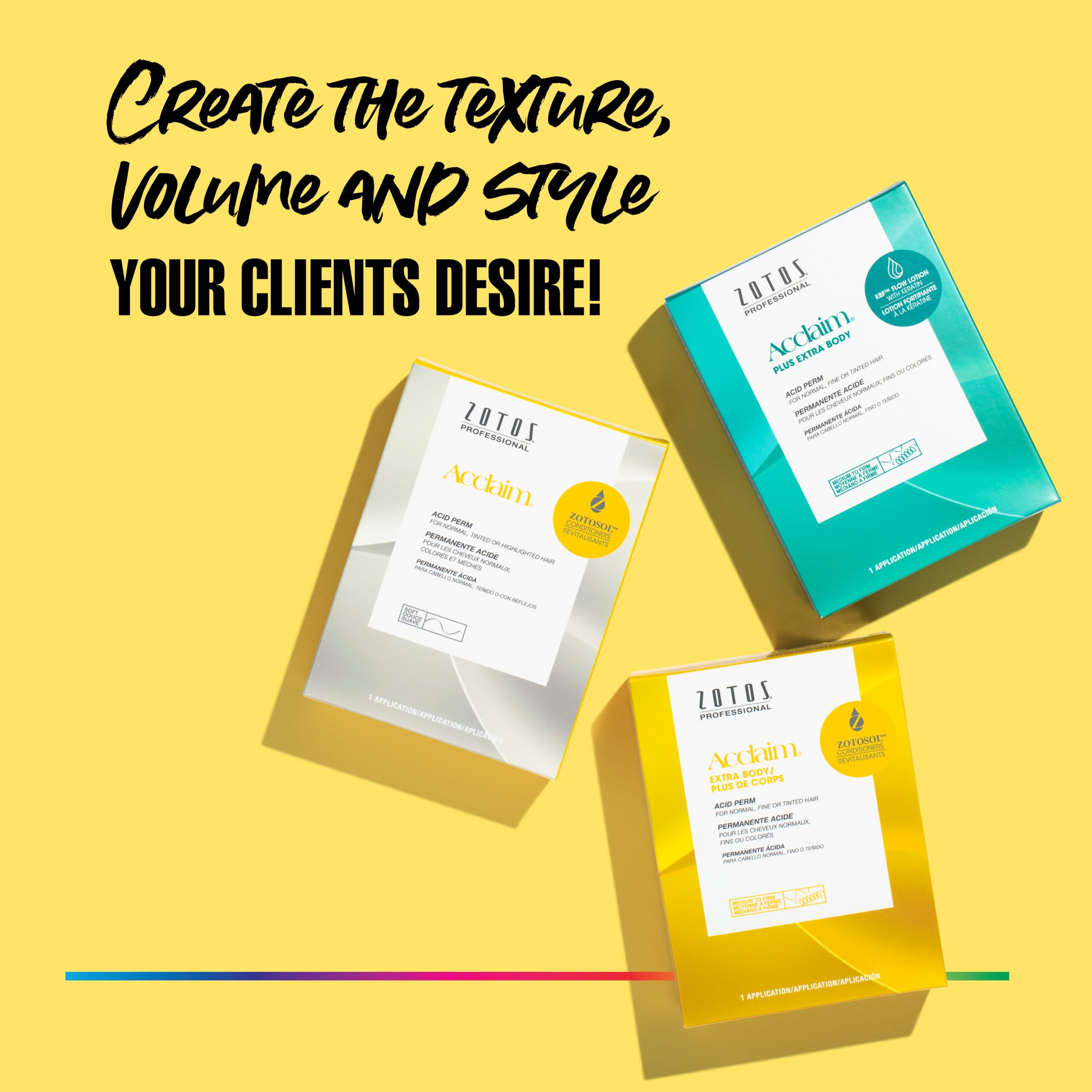 Acclaim® acid perms allow you to create the texture, volume and style your clients desire! Provides true-to-rod size curls with consistent, predictable results.