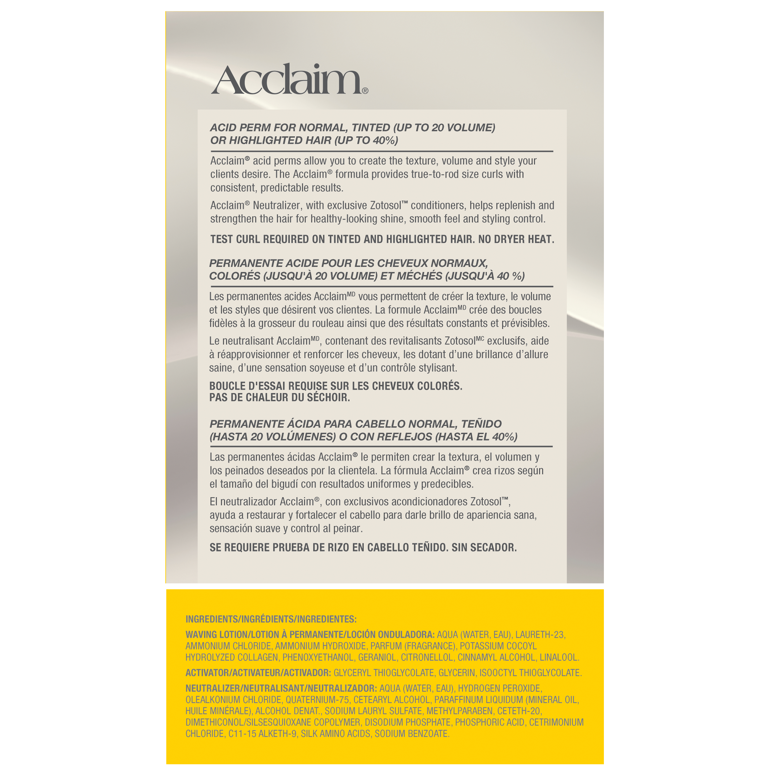 Acclaim Neutralizer, with exclusive Zotosol™ conditioners, helps replenish moisture and strengthen the hair for healthy-looking shine, smooth feel and greater styling control.