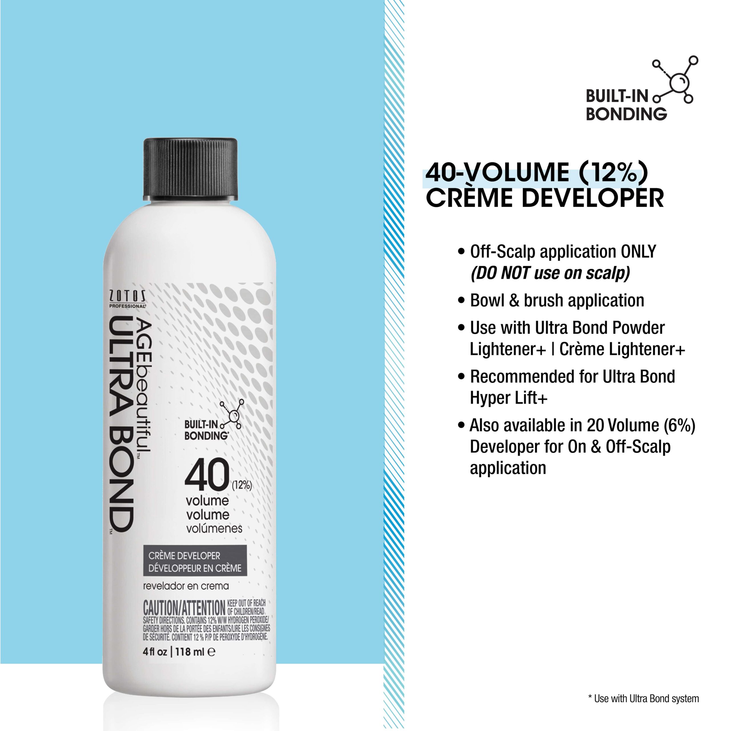 With Built-In Bonding. For use with AGEbeautiful ULTRA BOND ™ Creme & Powder Lighteners and Hyper-Lift Shades