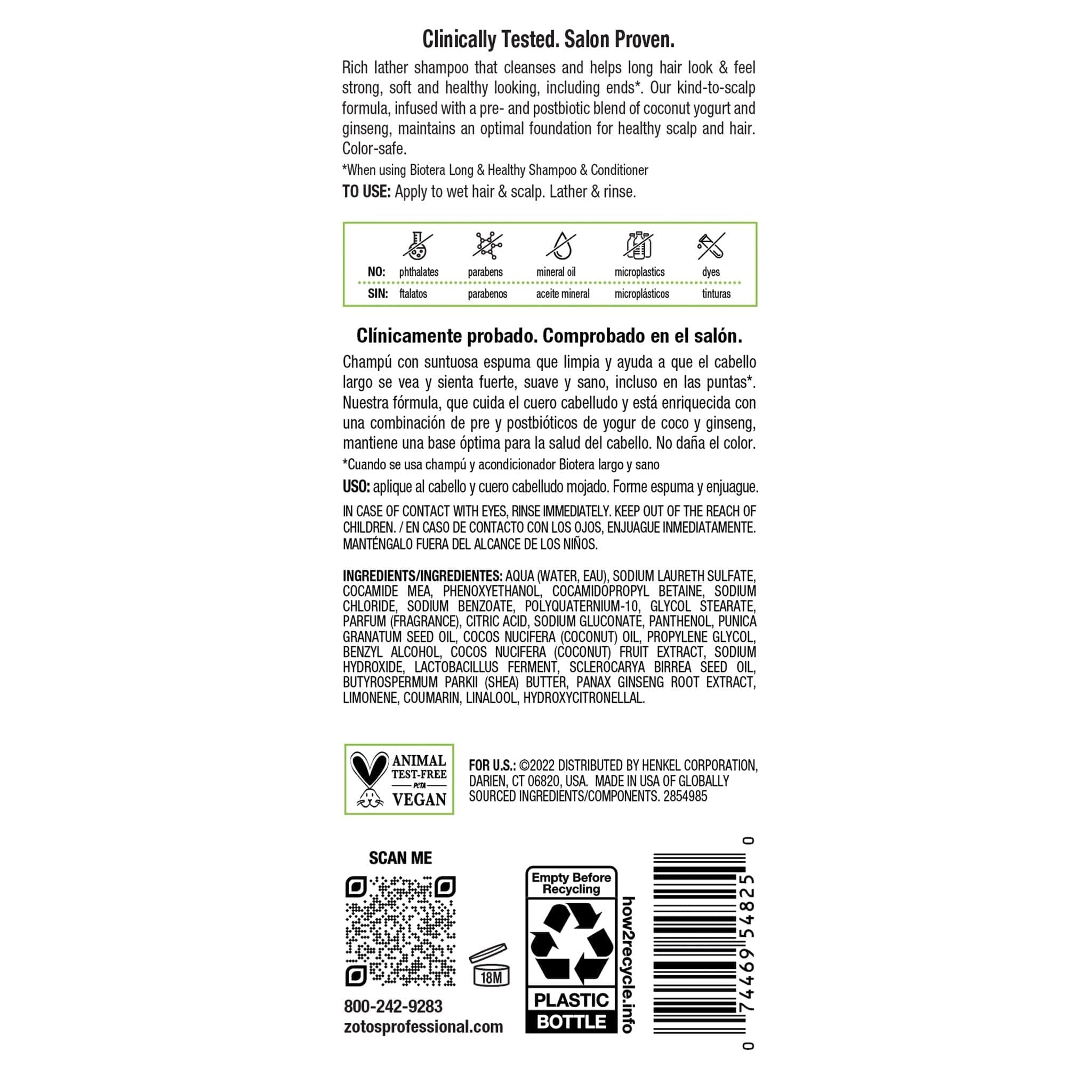 Healthy hair begins with a healthy scalp. Biotera’s Long & Healthy Shampoo has a rich lather formula that helps keep long hair looking and feeling strong, soft, and healthy, including ends.* Our kind-to-scalp formula, infused with a pre- and postbiotic blend of coconut yogurt and ginseng, helps to maintain an optimal foundation for healthy scalp and hair.